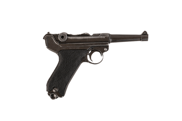 Pistole Parabellum 1908 (P.08) – en av världens mest kända tyska pistoler använder sig av kort piprekyl och slutstycket har ett knäledslås. Modellen tillverkades under perioden 1898 – 1942. När pistolen avfyras får pipans rekyl slutstycket att röra sig bakåt varvid knäleden öppnar sig vertikalt uppåt, den tomma patronhylsan kastas ut och en ny patron förs upp till patronläget från magasinet. Knäleden fjädrar sedan tillbaka och för fram slutstycket som förs på plats bakom patronen och pistolen är åter klar att avfyra. Detta ställde väldigt höga precisionskrav på tillverkningen och i kombination med fast pipa gav vapnet mycket bra precision. Armé modeller med förlängda pipor typ 203mm pipa hade siktesgraderingar upp till 800m! P.08 var den första serietillverkade pistol som hade ett löstagbart magasin som placerades i kolven, numera är ju detta standard i princip alla automatpistoler. Modellen var mycket populär ibland Tyska officerare under 2:a världskriget. Replika pistolen är tillverkad i metall med fungerande mekanism samt löstagbart magasin. Denna klassiska replika pistol har nu fått en ny härlig patina som kommer göra samlare världen över glada. Detta är en replika pistol som är avsedd för dekoration och kan inte på något sätt användas att skjuta med.
